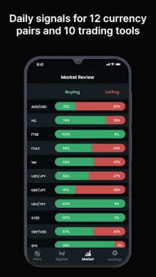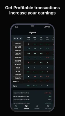 This application provides support for a variety of instruments, including major currency pairs such as EURUSD, GBPUSD, and USDJPY, as well as other popular options like gold and stock market indices. It offers daily signals in English for 12 currency pairs and 10 trading tools, with real-time updates and clear entry, stop loss, and target profit levels. These signals can be received on your mobile device, allowing for easy access and potential profits anytime and anywhere.