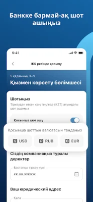 Біздің қосымшамыз арқылы сіз мемлекеттік тілде жасаған және орыс тілінде бейімдедік мобилді банк ауқымына қол жеткізе аласыз. Сізге SMS пен ЭЦҚ арқылы қарапайым тіркеу арқылы жеңіл кіру мүмкіндігі беріледі. Осы арқылы сіз жылдам алып, операциялар жүргізе аласыз.