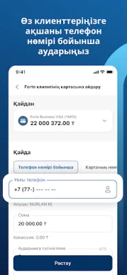 Қосымшамыз арқылы сіз шоттар арасында қадағалау арқылы шетел валютасында, әр түрлі валютада төлемдер мен аударымдар жасау мүмкіндігінің болуынан қол жеткізе аласыз. Осы арқылы сізге Fortex қызметін қолдану мүмкіндігі беріледі. Бұл жерде жеке тариф бойынша комиссиясы