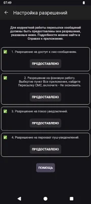 In order for the app to function properly, it requires certain permissions. These include the ability to receive SMS messages for forwarding, use a foreground service for real-time forwarding, display status notifications, and restore forwarding after a device restart if enabled by the user.