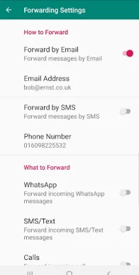 For phone calls, the forwarding is simple and includes the caller's information and the time of the call. However, for other types of notifications such as texts, WhatsApp messages, and Facebook messages, the full message can also be forwarded if desired.