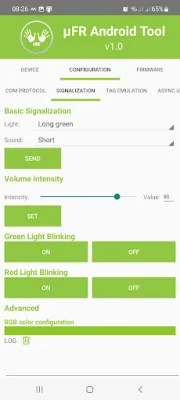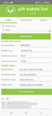 This application is a tool that allows users to configure and update the firmware of µFR Series RFID NFC readers. It offers a wide range of configuration options, including NFC tag emulation, LED and beeper settings, anti-collision, and security features. Users can also use this tool to send custom commands and update the firmware version of their µFR Series devices.