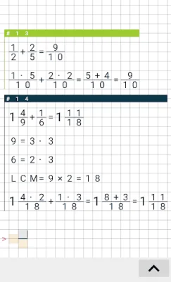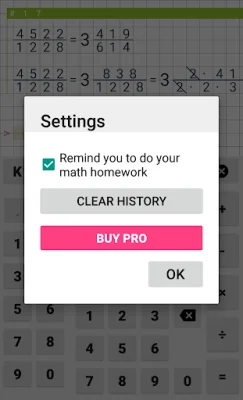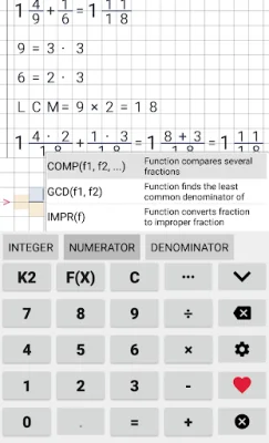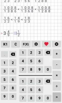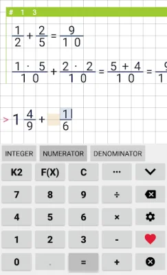 This application is a calculator that specializes in working with fractions. It has several features that make it stand out from other calculators. One of the main features is the operations history, which can store up to 1000 entries. This means that you can easily access and review your previous calculations, including those from the previous day. This can be helpful for keeping track of your work and making sure you don't make any mistakes.