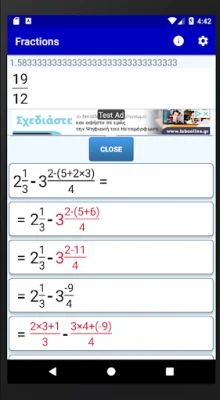 The calculator also has the ability to convert decimal numbers to fractions and vice versa. This can be done by entering the decimal number and pressing the equals button. The result will be shown as both a fraction and a decimal approximation.