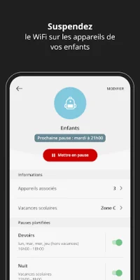 Vous avez également la possibilité de suspendre le WiFi sur les appareils de vos enfants en définissant des limites. Vous pouvez décider d'une heure à partir de laquelle leurs appareils ne peuvent plus se connecter, ou encore définir une heure de coucher.
