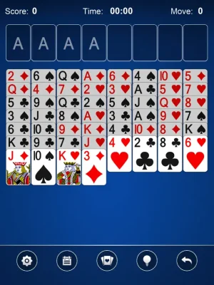 FreeCell Solitaire is a new and exciting twist on the classic solitaire card game. The objective of the game is to strategically move all the cards to the four Foundation piles, building each suit up from Ace to King. To help you win, you can use the four open cells to store cards. Our app features sharp and clear visuals, with beautiful and clean graphics as backgrounds.