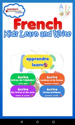 Overall, "Learn and Write French" by TeachersParadise.com Studios is a valuable tool for parents looking to introduce their children to the French language. It offers a fun and interactive way for kids to learn and practice handwriting while expanding their vocabulary and alphabet knowledge. With its user-friendly interface and comprehensive features, this app is a great choice for young learners.
