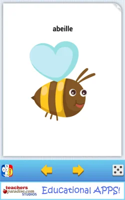 "Learn and Write French" is an educational application designed to help children learn the French language through handwriting practice. The app offers a fun and interactive way for kids to expand their French vocabulary and improve their alphabet knowledge. It starts with flashcards that associate each letter with a corresponding image, such as "A is for abeille (bee)" and "B is for ballon (balloon)". This visual and auditory learning approach helps children easily grasp the new language.