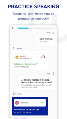 In addition to video lessons, French Listening & Speaking also offers conversational practice with native French speakers. This allows users to improve their speaking skills and gain confidence in communicating in French. With a structured curriculum, users can track their progress and see their improvement over time.
