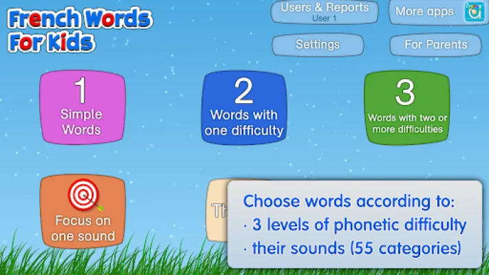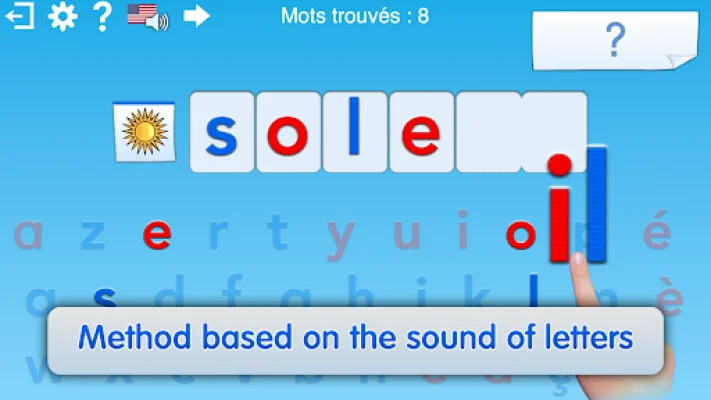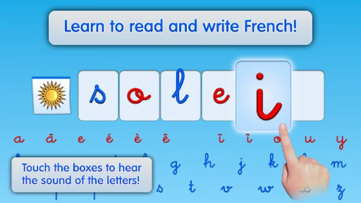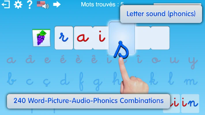 One of the unique features of this app is the ability to hear the sound associated with each letter when it is touched. This is a great way to become familiar with spoken French and improve pronunciation. Additionally, users can also hear the phonetic decomposition of each word by touching the white squares where letters must be dragged.