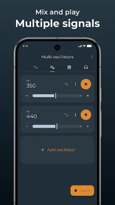 The app also has a multi-oscillator feature that allows you to combine multiple oscillators to create complex harmonic sounds and chords. You can layer different frequencies and waveforms to experiment with acoustic phenomena and interference patterns. This is perfect for musicians, composers, and music students.