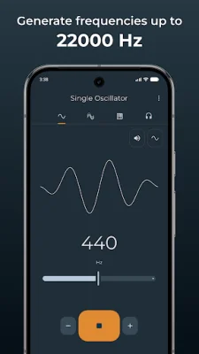The main features of this app include a single oscillator that can generate pure tones from 1 Hz to 22,000 Hz with precise frequency control. You can choose from multiple waveforms, including sine, square, triangle, and sawtooth. This feature is great for audio testing, speaker calibration, tinnitus relief, or scientific experiments.