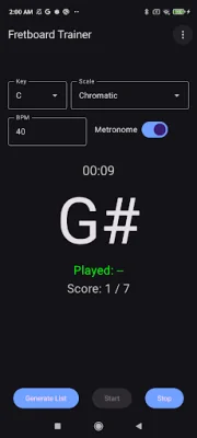 One of the key features of Fretboard Trainer is its random note generation. This allows users to practice with a variety of different notes, helping them to become more familiar with the fretboard and improve their overall playing ability. Users can also select their preferred scale and key, making the practice sessions more personalized and tailored to their specific needs.