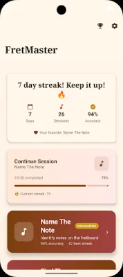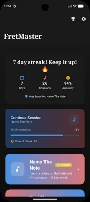 FretMaster is designed to be adaptable to different instruments, including extended-range setups. This makes it a useful tool for both guitar and bass players. The app also offers short and focused practice sessions that can easily fit into a daily routine, making it easier for users to develop a consistent practice habit. Additionally, the streak tracking feature helps users stay motivated without feeling pressured.