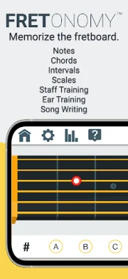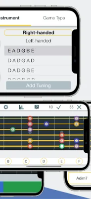 This application offers a variety of games to help users practice and improve their musical skills. With 21 different games, users can work on notes, chords, scales, intervals, staff reading, and the circle of fifths. They can also generate chord progressions to assist with songwriting. The app features 9 different instruments to choose from, including guitar, bass, mandolin, ukulele, and banjo. Users can customize their experience by selecting which section of the fretboard they want to practice on, whether it's the first frets, a section in the middle, or the entire fretboard. The app offers a range of games to choose from, such as matching notes to frets, color matching, and identifying chord patterns. Users can also practice reading notes on a staff or combine fretboard and staff training. The app also allows users to explore scales on their instrument's fretboard, with the option to choose from 63 different scales and customize the color of the notes for easier identification. Progress can be tracked through statistics and a heat-map, and users can share their progress with friends. The app also offers common tunings for each instrument, with the option to add custom tunings. Additional features include the ability to compete with friends on Game Center, left-handed mode, and support for various note notations such as solfege, numbers, and different languages. While the app offers free access to train the first few frets of each instrument, users can fully unlock each instrument through in-app purchases. Overall, this app provides a comprehensive and customizable way for users to improve their musical skills.
