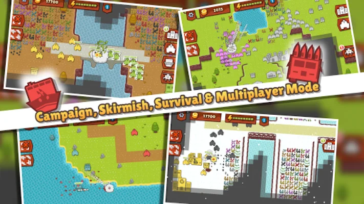 This application is a strategy game that allows players to explore a map and gather resources, research new technologies, and build unique land, sea, and air units. The ultimate goal is to lead your army to victory and conquer your opponents. The game offers various modes such as Campaign, Skirmish, Survival, and Multiplayer for up to 4 players, providing a diverse and engaging experience for players.