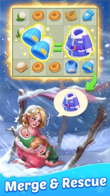 The merging process is done by tapping, dragging, and merging items to uncover more exciting ones. These merged items are then collected to progress through the chapters and unlock new scenes, gradually bringing the valley back to life. Each repair and restoration of a frozen home will open up new rooms and scenes, showcasing the valley's revival.