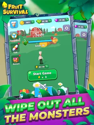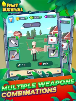One of the unique features of Fruit Survival is the ability for players to customize their character. They can choose their favorite character, weapons, and skill attributes to create a unique character that reflects their playstyle. By continuously upgrading their attack power, life value, combat power, and speed value, players can create a character that is truly their own.