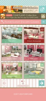 The game features a total of 10 themed rooms for players to explore. These include a Tea Salon, French Restaurant, Beauty Salon, Nail Salon, Japanese Cafe, Parisian Hotel, Ocean View Ryokan, Nordic Cottage, New York Hotel, and Spanish Hotel. Each room has its own unique design and items to collect, providing players with a diverse and engaging experience.