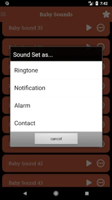 In addition to playing the sounds, you can also set them as favorites for quick access, or as notifications, alarms, or contact ringtones. You can even share the sounds with your friends through various messaging platforms. The app also allows you to add sounds as widgets on your phone's desktop, play random sounds, and more. With this app, you can have a fun and entertaining experience with cute baby sounds and ringtones. So why wait? Download it now and make your baby laugh!