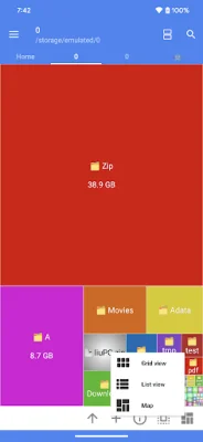 Finally, this file manager offers treemap visualizations for storage. This means each file is represented as a colored rectangle, with the size of the rectangle proportional to the file's size. Directories are also represented as rectangles, with the size of the rectangle proportional to the size of all the files and subdirectories within it. This provides a visual representation of your storage and makes it easy to identify large files that may be taking up too much space. Other features include support for scanning QR codes and barcodes, markdown file preview, and HTTP file download.