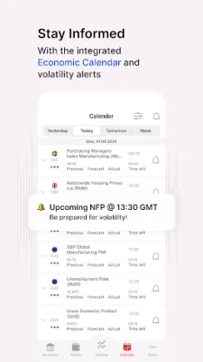 The app also provides professional features such as real-time market news and insights, a built-in economic calendar, one-tap trade execution with smart risk management tools, custom charts, and full-screen TradingView integration. It also offers multi-language support, responsive 24/5 customer service, zero deposit/withdrawal fees, and a wallet system for safe internal transfers.