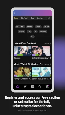 Welcome to GagaOOLala, the ultimate streaming platform for LGBTQ+ content from around the world. By registering, you will have access to a vast library of over 1600 titles, including feature films, series, shorts, documentaries, animation, variety shows, and exclusive GagaOOLala Originals. Our collection is constantly expanding, with new content added every week. With a variety of genres such as drama, romance, comedy, fantasy, mystery, thriller, and more, there is something for everyone to enjoy.