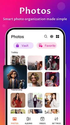 One of the standout features of this app is the built-in Private Vault, which allows you to hide photos and lock private videos with a pattern or fingerprint. This ensures that your personal photos are completely protected from unauthorized access, making it not just a free gallery app, but also a secure gallery for sensitive memories. The private photo vault is simple and reliable, providing peace of mind for your data.
