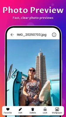 With advanced photo manager tools, you can easily sort, rename, share, and delete files in bulk. You can also mark your favorite images, edit them, or set them as wallpapers with just one tap. This photo organizer ensures that you never lose track of your special moments.