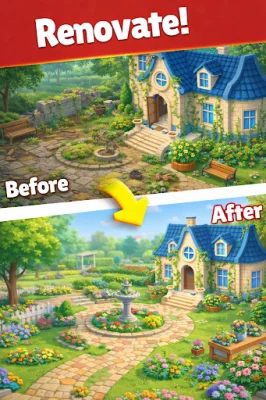 Players take on the role of a creative landscaper, diving into the world of landscaping to transform ordinary home gardens into beautiful havens. With Garden Makeover, players can leave interior design behind and focus on the great outdoors. By completing match 3 puzzles, players can turn a simple house yard into their dream garden.