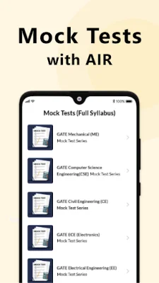 With this app, students won't need to enroll in online coaching or join an academy for GATE preparation. The study material and MCQs in the app are designed according to the latest GATE syllabus, and have been gathered from a question bank of the previous 30 years. This includes questions for all branches, such as CSE, ECE, EE, Civil, ME, CH, IN, PH, MA, XL, ES, BT, AR, DS & AI. The app also provides previous year solved papers and preparation books for various branches.