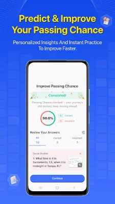 Users love this app because it provides accurate GED-style questions that match the format, difficulty, and wording of the official exam. It also offers full coverage of all subjects, a smart passing chance score to determine readiness level, and diagnostic, practice, and final tests to improve pacing, accuracy, and confidence. The app also has quick study modes for learning on the go and AI-powered explanations for a better understanding of concepts.
