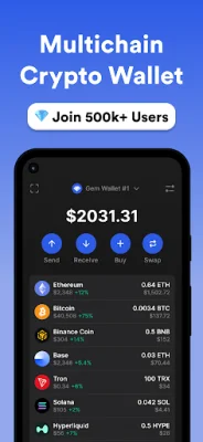 Gem Wallet is an application that allows users to easily access and manage their decentralized finance (DeFi) and traditional finance needs in one place. With this app, users can seamlessly connect to any decentralized application (dApp), invest in staking, and swap tokens. The app supports a variety of coins, including USDT, BTC, ETH, and more, and allows for secure connections to Web3 applications. This opens up endless possibilities for users, all within the convenience of one app. The app offers a range of features to ensure privacy and security for its users. Private transactions can be performed without sharing personal information, and the wallet itself is protected by military-grade encryption, PIN protection, and biometric login. The multi-chain wallet supports over 100 blockchains, including BTC, ETH, XRP, Sui, and Tron, making it easy for users to manage all their assets in one place. Additionally, businesses can use the app to send and receive USDT-TRC20 and other assets. Gem Wallet also offers the convenience of in-app purchases, allowing users to buy USDT, USDC, BNB, and more with just a few taps. The app also features a built-in DEX aggregator, providing users with the best rates from platforms like Uniswap v4, PancakeSwap, Thorswap, Ston.fi, and Mayan Protocol, without having to leave the app. This makes it easy for users to trade and manage their assets without any hidden commissions. In addition to crypto payments with low fees, Gem Wallet offers a range of other features to unlock the full potential of crypto. Users can add custom tokens and RPC nodes for advanced use, send and manage NFTs through popular blockchains, access crypto loans, and connect to exchanges. The app also allows users to trade memecoins like TRUMP, PEPE, DOGE, and others. The Earn and Trade Center within the app offers even more benefits for users. They can earn rewards through staking or yield-bearing stablecoins, trade on decentralized Hyperliquid perpetuals with ease, track and trade trending tokens and memecoins, and manage USDT on various blockchains like TRC20, ERC20, Solana, TON, and more. With hundreds of thousands of users already choosing Gem Wallet for its privacy and security features, it's clear that this app is a top choice for managing all crypto needs. And for those who need assistance, the app offers 24/7 human support. So why wait? Experience the convenience and security of Gem Wallet today!
