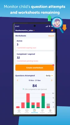 The application also offers a smart and simple worksheet planner, powered by AI, which makes it easy for parents to assign effective worksheets with just a tap. Studies have shown that parent-assigned worksheets are 30% more likely to be completed, making this feature a valuable tool for parents.