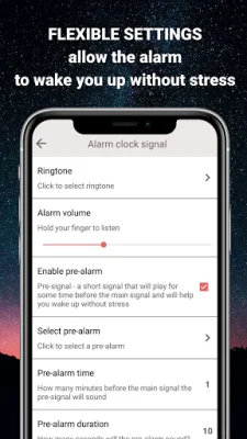 The app offers a variety of features to make your waking up experience more pleasant. You can choose your own alarm ringtone from a selection of calm and soothing options. You can also turn off the alarm by simply flipping your phone or using the volume buttons. For those who need a little extra push to wake up, there is a quiet pre-signal option that will gently nudge you before the main alarm goes off.