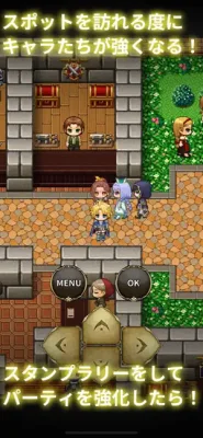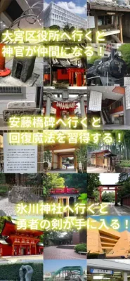 このアプリは、街を歩いてスタンプラリーをすることで、ゲーム内のキャラクターたちが成長するゲームです。たくさんのスポットを訪れてパーティを強化し、ゲームの世界を滅ぼそうとする魔王を倒すことが目的です。どのスポットをどの順番で訪れるかは自由で、大宮駅周辺の30か所のスポットを巡り、リアルなロールプレイングゲームを楽しむことができます。