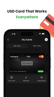 One of the key features of Geotopup Wallet App is the ability to convert airtime into cash instantly. This is perfect for those who have over-recharged or need urgent cash. The process is seamless and takes only seconds to complete. Additionally, users can also get a secure virtual dollar card for online transactions, international payments, and global shopping. This allows for confident spending anywhere in the world.