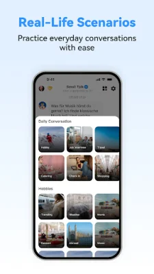The app also offers scenario-based lessons that cover a wide range of topics, including daily life, travel, work, and exams. This allows users to explore topics that are relevant to their specific goals and interests. Additionally, the app has an adaptive difficulty feature that adjusts to the user's skill level, making the learning process more efficient and personalized.
