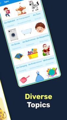 Our app offers a variety of educational games that are not only enjoyable but also effective in helping you learn German. These games are safe for children and cover a range of topics such as word games, spelling, sound and picture matching, and more.