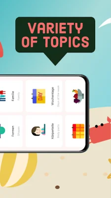 The app covers a wide range of topics, including numbers, colors, family, body parts, and more. It also includes games to improve memory and grammar skills, as well as pronunciation and intonation. With the option to take tests and track progress, this app is suitable for both children and beginners.