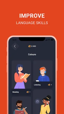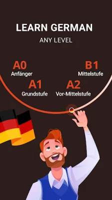The app offers four levels tailored for different types of learners: Beginner (A0), Elementary German (A1), Pre-Intermediate (A2), and Intermediate (B1). It serves as a personal tutor, providing essential vocabulary for each level. The use of unique illustrations and word games makes it easier for users to retain new words.