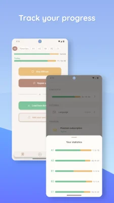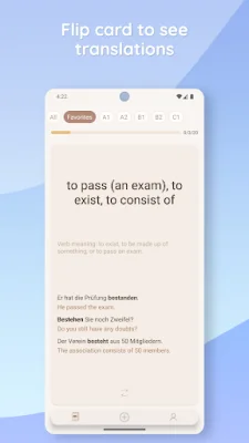 The word cards in this app are double-sided, meaning users can flip them to see translations, context, and details. This can be useful for gaining a deeper understanding of the words and how they are used in different contexts. The app also offers different levels (A1-C1) to focus on the words that are most relevant to the user's language proficiency level.