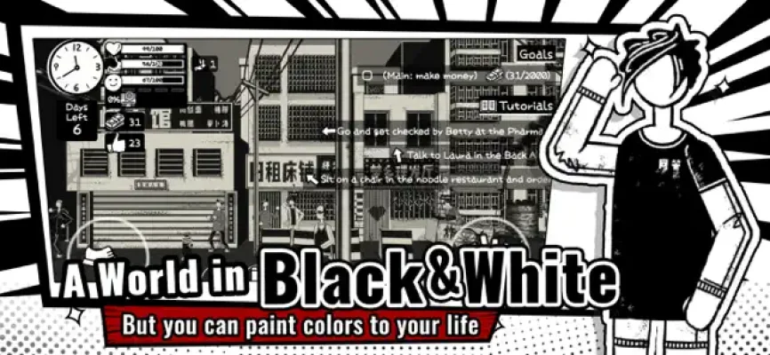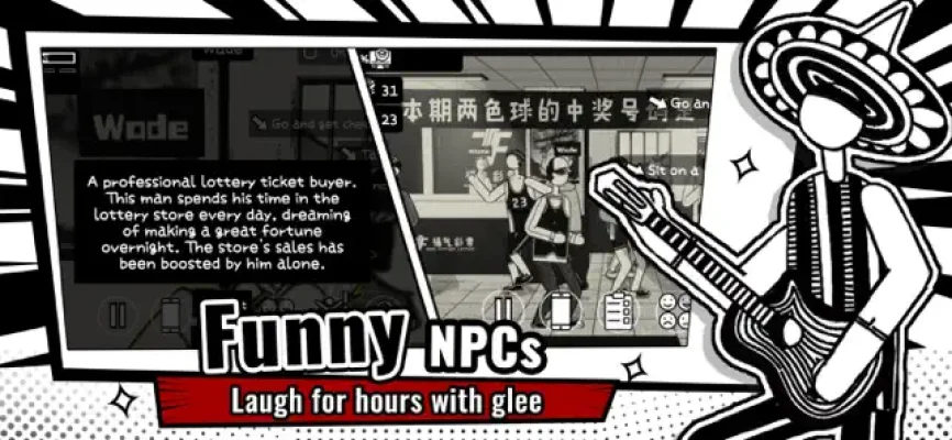 This simulator boasts a distinct black-and-white art style, reminiscent of stencils. Interactions with other non-playable characters (NPCs) will leave you laughing out loud, and there are various opportunities to develop your character and become rich. With a diverse range of mini-games, this simulator promises to keep you engaged and entertained.