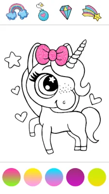 In summary, this glitter unicorn coloring book is a fun and educational app that provides a safe and beautiful platform for kids to explore their creativity. With its bright colors, enchanting unicorns, and user-friendly interface, this app is sure to be a hit among young users. So let's dive into the magical world of unicorns and have some fun painting!
