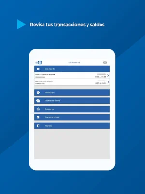 But that's not all - "Banca Móvil" also allows you to perform various transactions directly from your phone. You can make transfers, pay bills, top up your phone or other services, and even make requests for specific services. This makes managing your finances on-the-go quick and convenient.