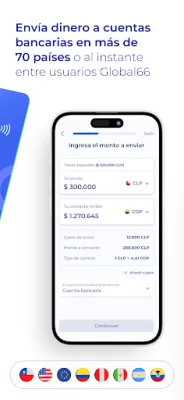 Global66 es una aplicación que te permite abrir una cuenta global para realizar transferencias a más de 70 destinos en todo el mundo. Además, puedes convertir tus pesos a 8 monedas distintas, incluyendo dólares y euros, y pagar en el extranjero directamente desde tu billetera en la moneda local. También puedes ganar hasta un 6% de interés con tu cuenta en dólares.