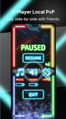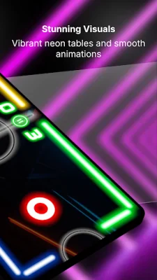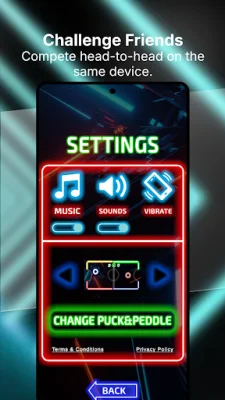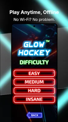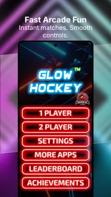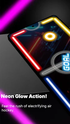 The game features stunning neon glow visual effects with colorful light trails, 2-player local multiplayer for same-device matches with friends, and multiple AI difficulty levels. You can also customize your look with various neon puck and paddle designs. The touch controls are smooth and responsive with zero input lag, and the game offers fast-paced arcade hockey action with exciting sound effects. There are also multiple neon arena themes with different color palettes, score tracking and match statistics, and it's easy to learn and fun for all ages.
