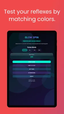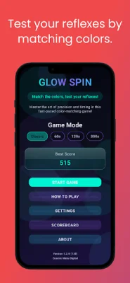 Whether players have a few minutes or a longer break, Glow Spin is the perfect quick game to test their reflexes and have some fun. With its simple yet challenging gameplay, it's easy to pick up and play, but hard to master, making it a game that players will keep coming back to for "just one more try."