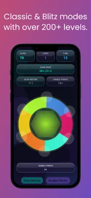 The objective of the game is to tap the color on the spinning ring that matches the colored shape in the center. As the game progresses, the colors on the ring will shift and the speed will increase, making it more challenging to tap the correct color. One wrong move and the game is over, so players must have quick reflexes and pay close attention to keep the game going.