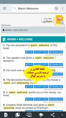 با استفاده از TExample، شما می توانید به راحتی و با سرعت بیشتری انگلیسی را یاد بگیرید و از دیکشنری های مختلف استفاده نکنید. این برنامه به شما امکان مشاهده جملات و مثالهای متناظر با لغت یا عبارت مورد نظر را می دهد و به شما کمک می کند تا به راحتی با اصطلاحات و عبارات مختلف زبان انگلیسی آشنا شوید.